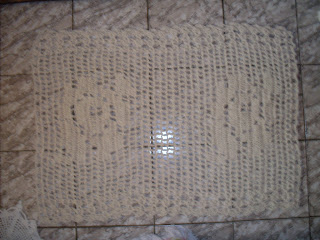 Esta toalha foi encomendada para ser utilizada numa mesa de oito lugares.