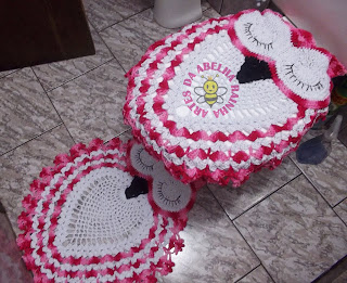 Jogo de Corujas Dorminhocas com 6 peças (Tapetes de vaso, pia, capa de lixeira, capa de caixa acoplada, porta papel higiênico e tampa do vaso)